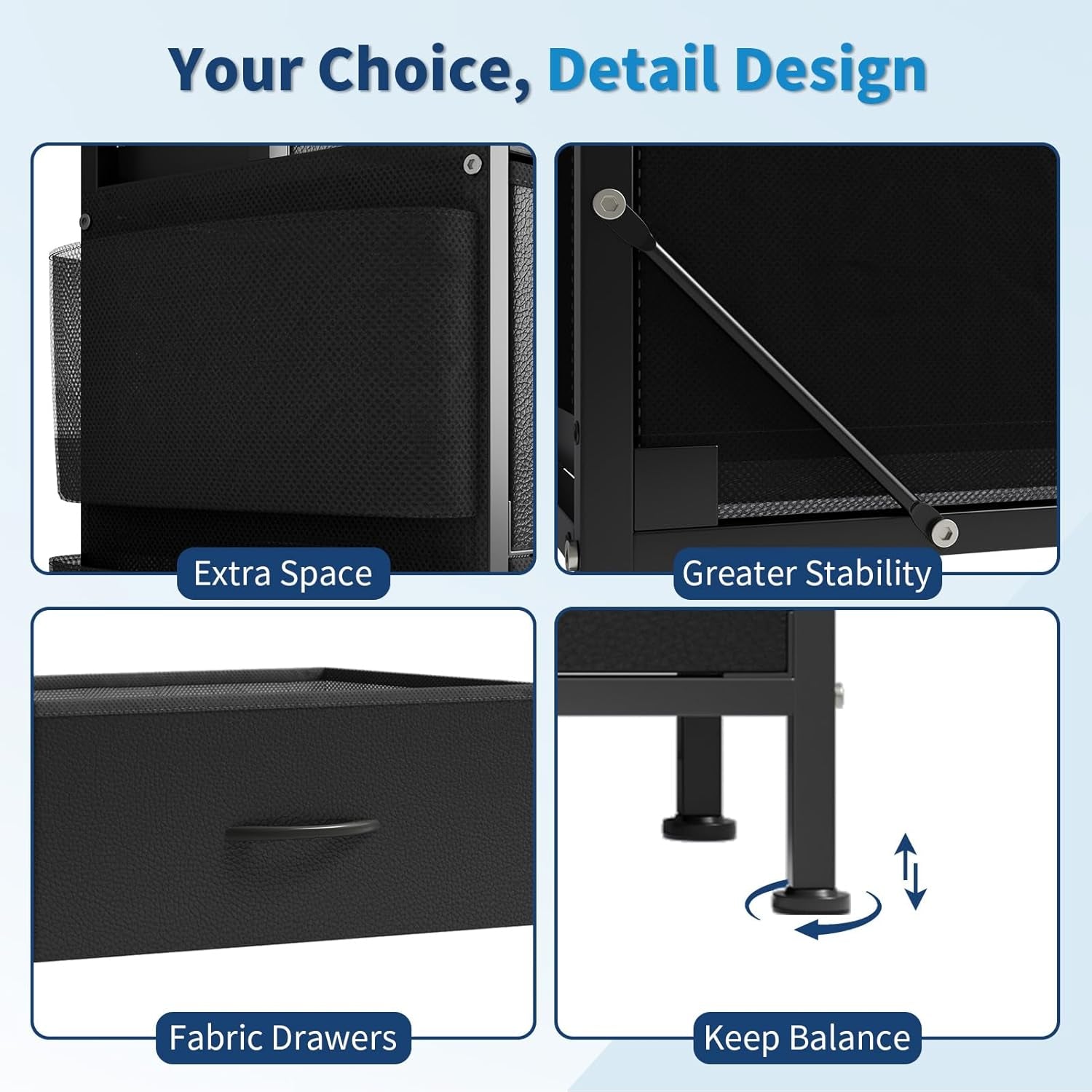 - Safe and floor-friendly: anti-tip kits to prevent tipping and adjustable feet to protect floors and stabilize on uneven surfaces.