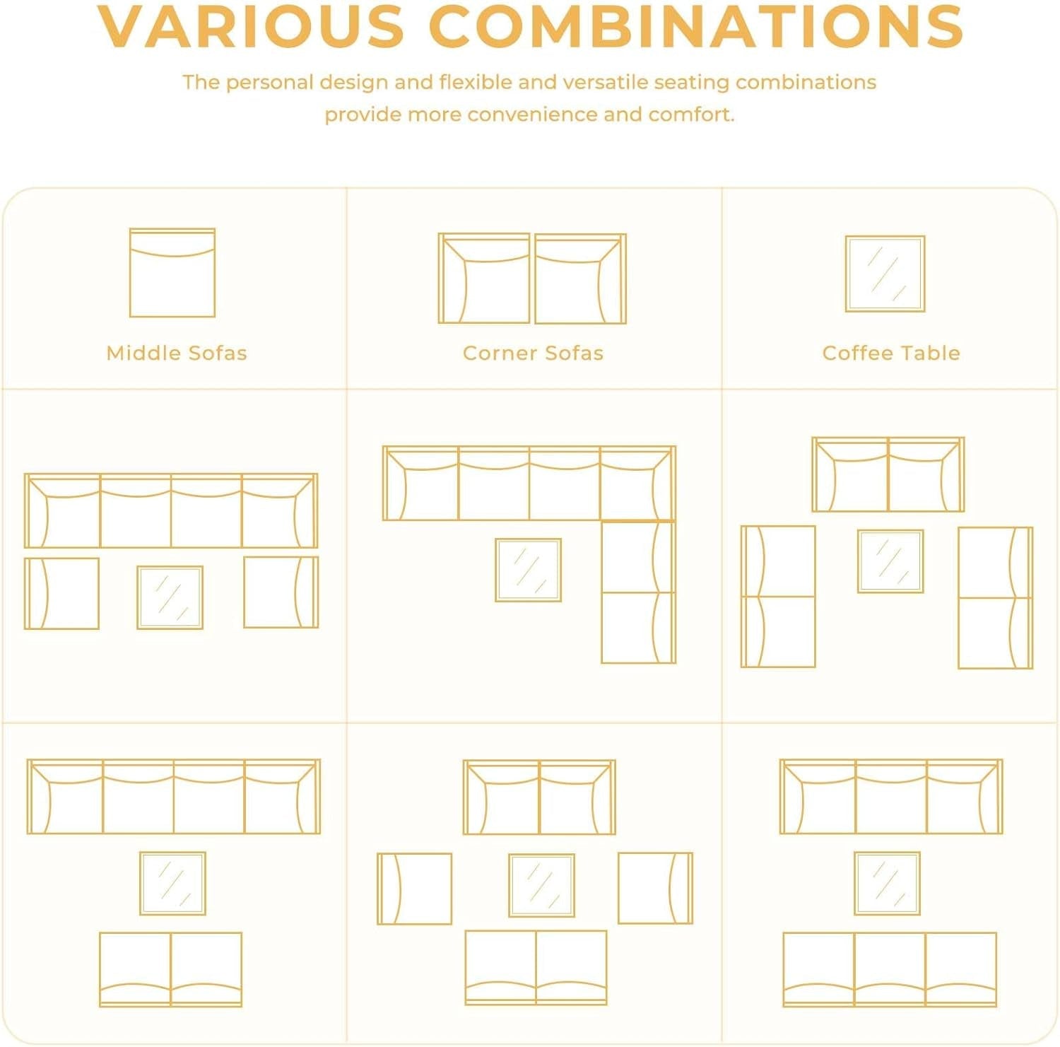 - Modular design: Includes 2 corner chairs, 4 armless chairs, and 1 glass-top coffee table with connector clips to keep the layout intact and flexible for your space.