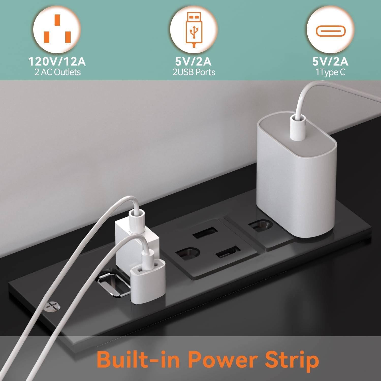 - Built-in power outlets: 2 AC outlets, 2 USB ports, and 1 Type‑C port integrated into the tall chest, so you can charge devices without extra cords.