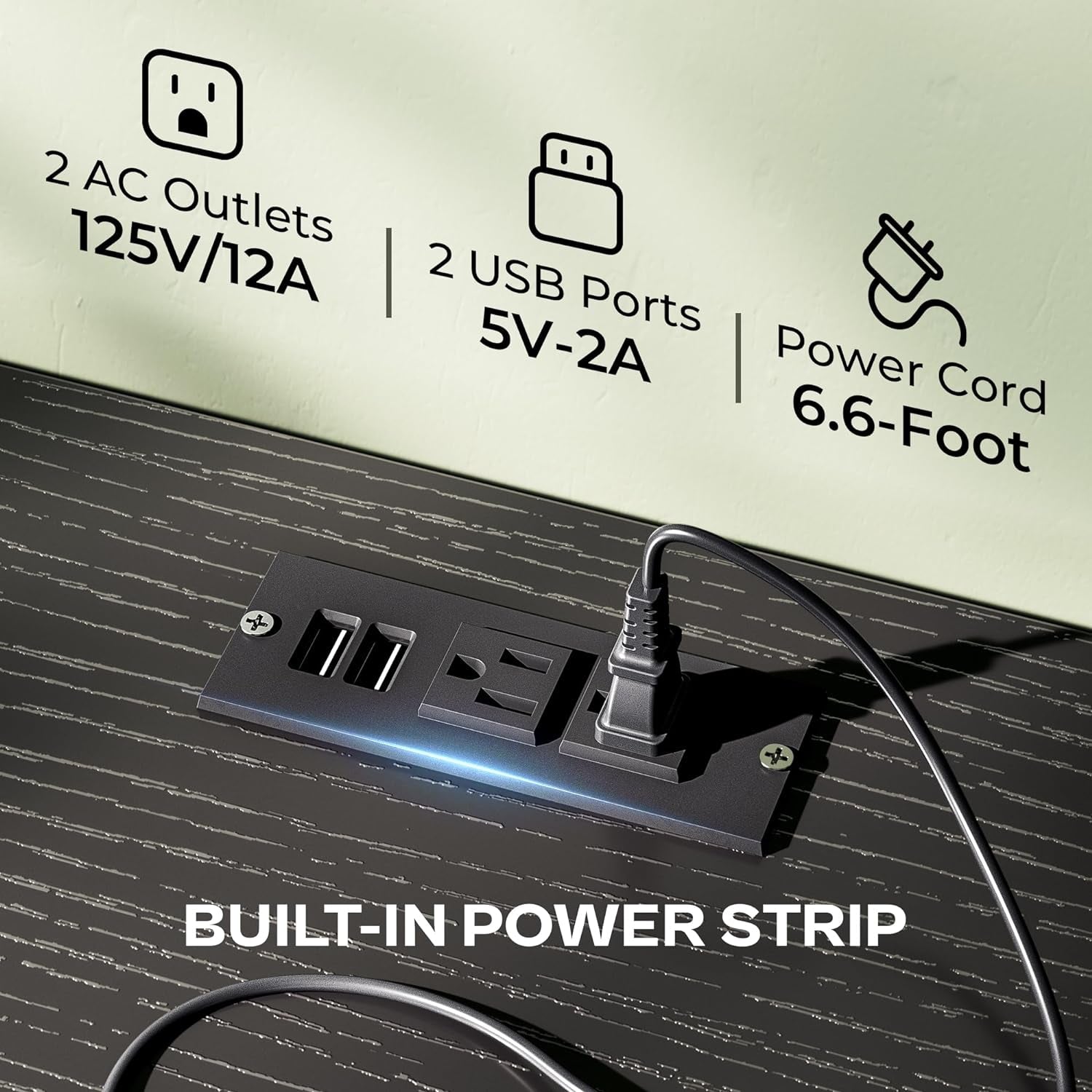 - Built-in charging keeps devices powered with 2 AC outlets and 2 USB ports within easy reach, reducing cable clutter.