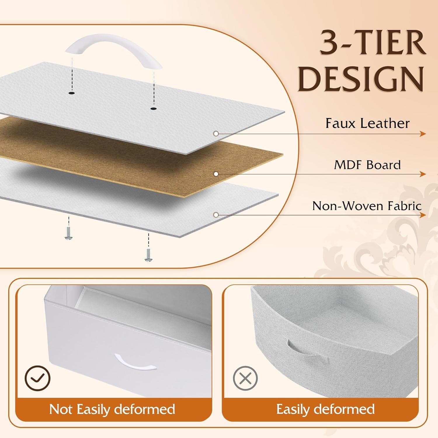 Fabric Dresser For Bedroom With Tall White Finish Storage