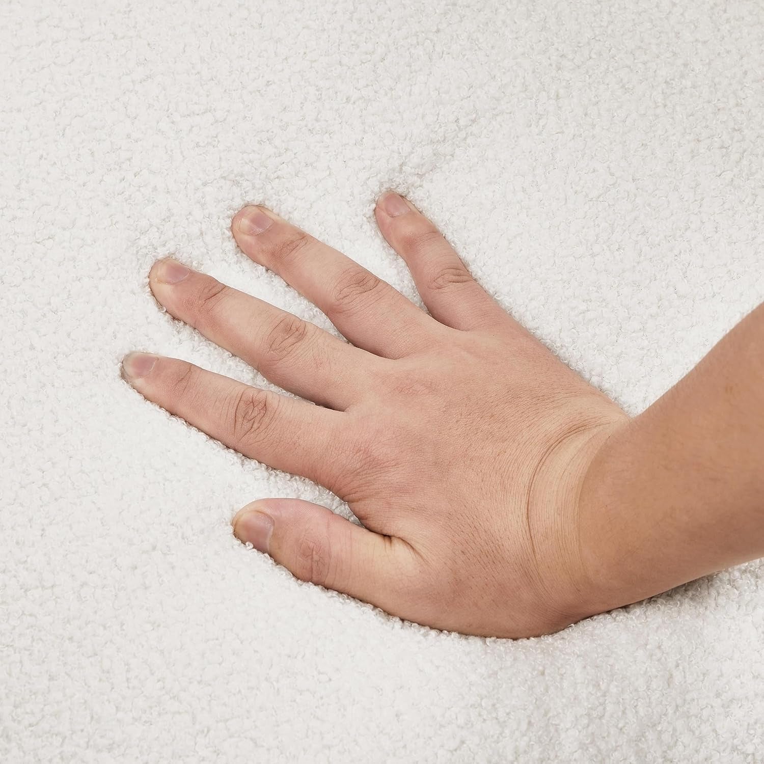 - Premium ivory boucle upholstery with rich texture for added depth and comfort