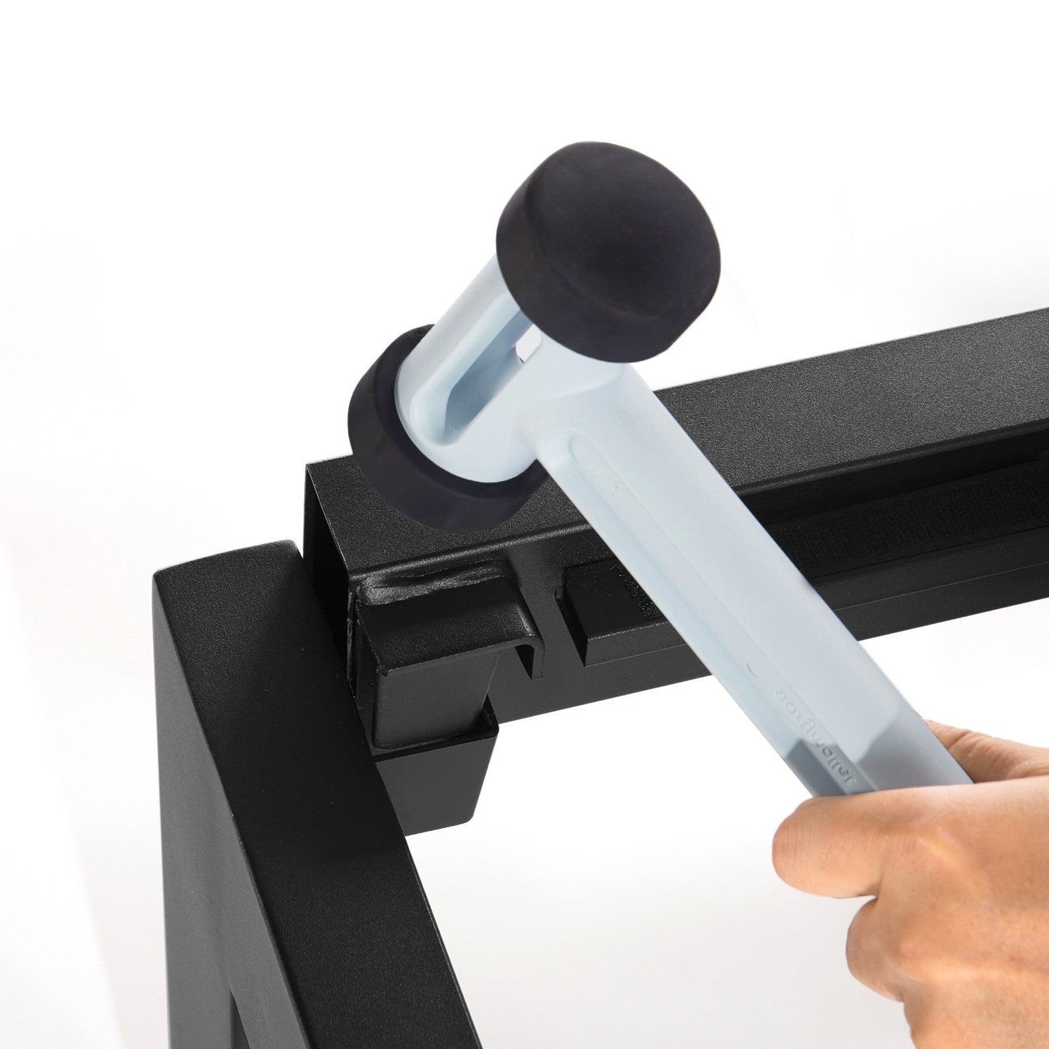 Make the simple life much easier with the King size 18 Inch Easy Assemble Metal Platform Bed Frame Wooden Slats. The only tool you need to set up a platform bed is a mallet which comes already included. The King size 18 Inch Easy Assemble Metal Platform Bed Frame Wooden Slats is made of a premium heavy duty steel with clean edges, giving your space a refined and modern look. There is ample space beneath the frame accommodates for extra storage to help keep your room organized. With no box spring needed, easily assemble and place your mattress on top to make a simple yet bold statement.