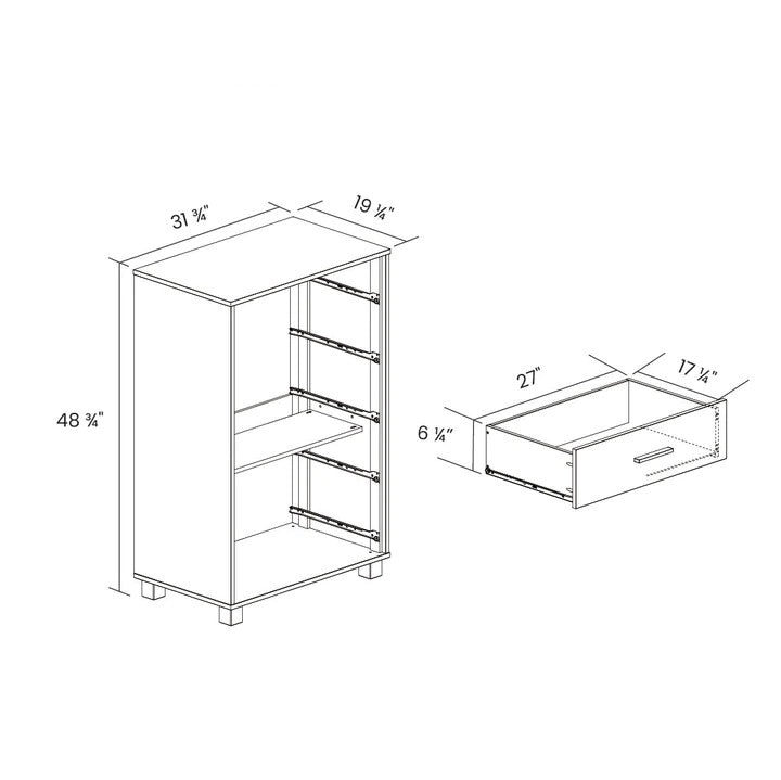 - Dimensions: 19.25 D x 31.75 W x 48.75 H