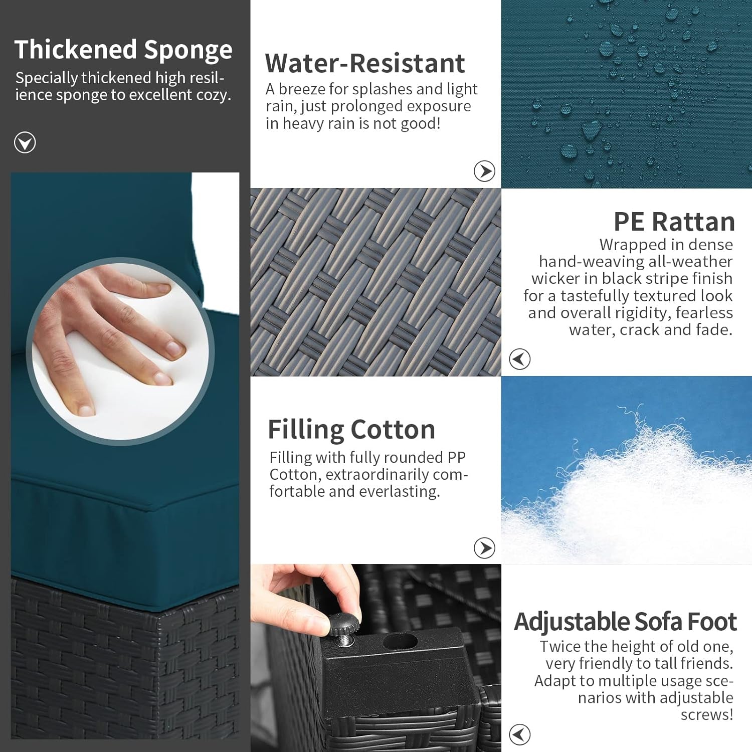 Patio Furniture Set 6 Pieces Peacock Blue Cushions Included