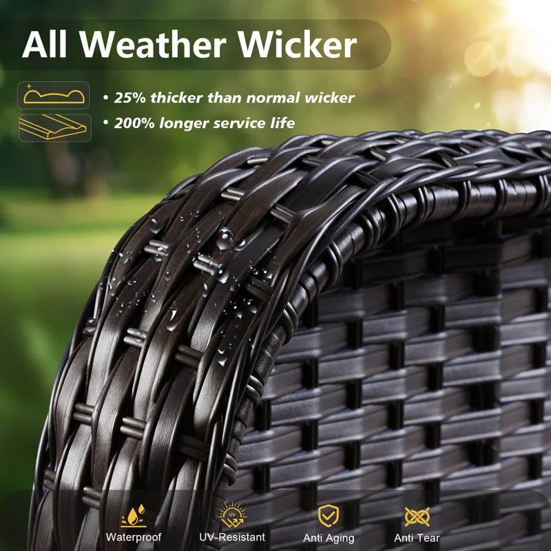 Crafted from high-density polyethylene (PE) imitation rattan, the frame delivers the natural wicker look with far greater weather resistance and low-maintenance care.