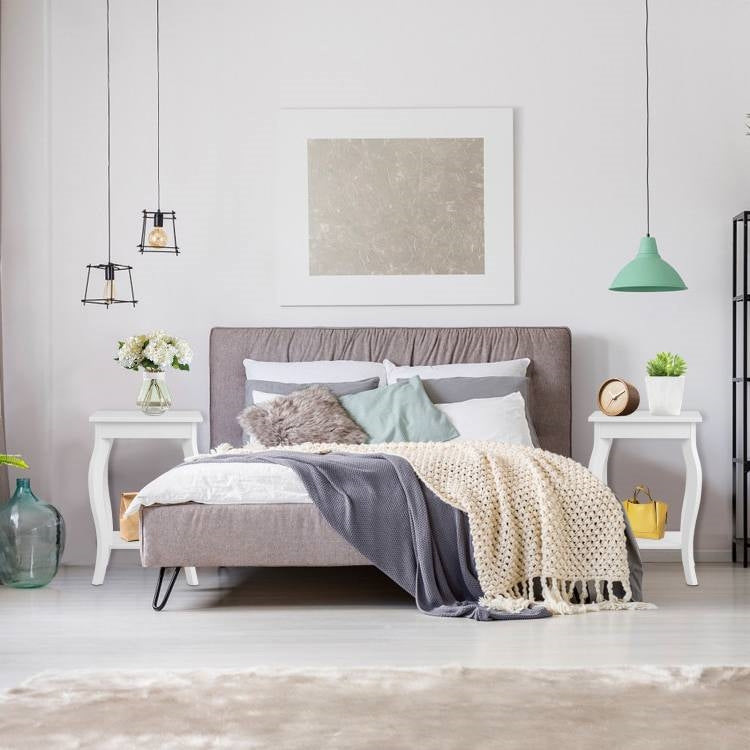 Stylish Nightstand End Table in White Wood Finish - Set of 2