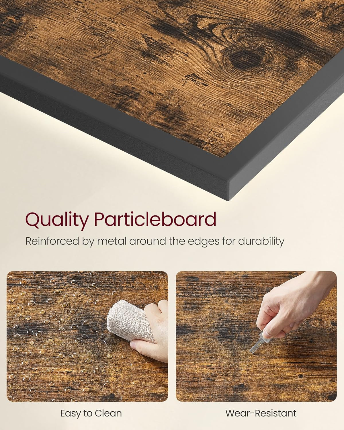 - Rustic charm with a rustic brown finish and matte black steel accents that suit industrial, vintage farmhouse, and contemporary styles.