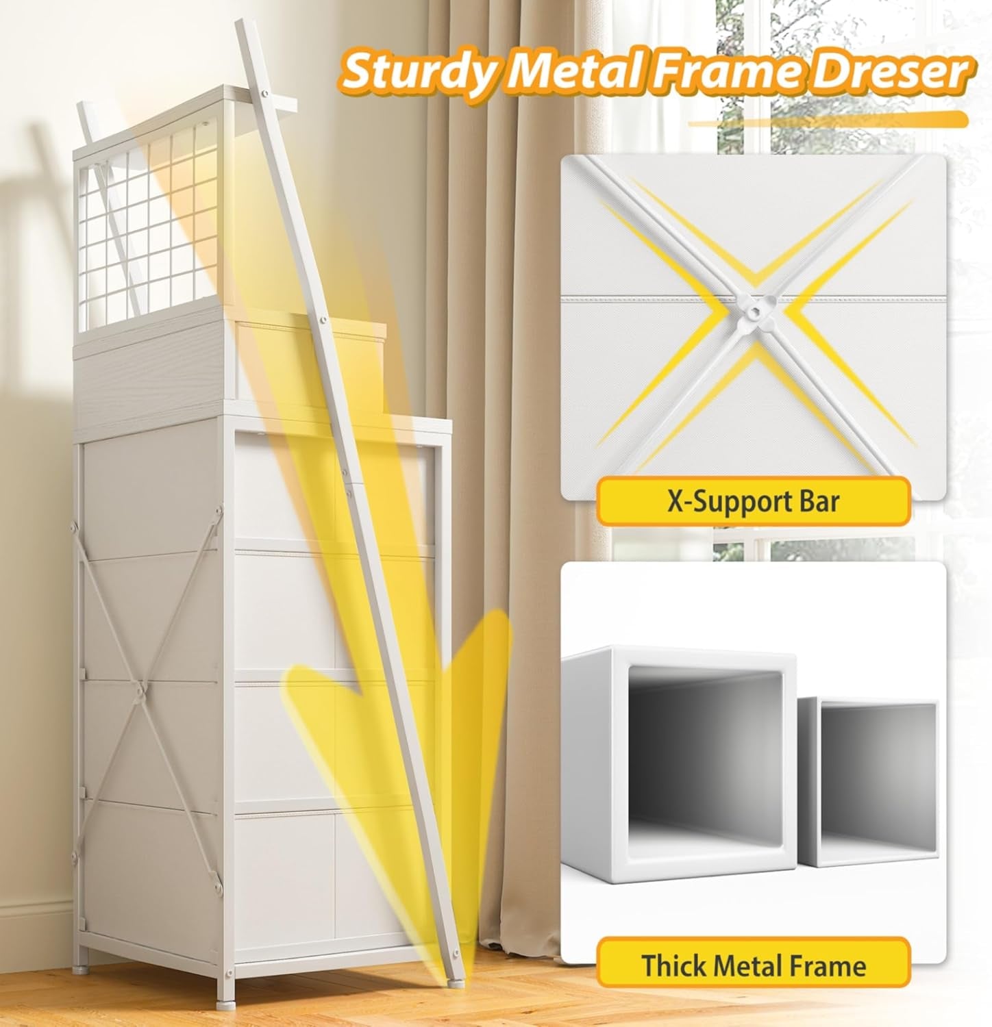 - Safe design: additional anti-tip mechanism and side steel rods preserve drawer smoothness and prevent accidents.