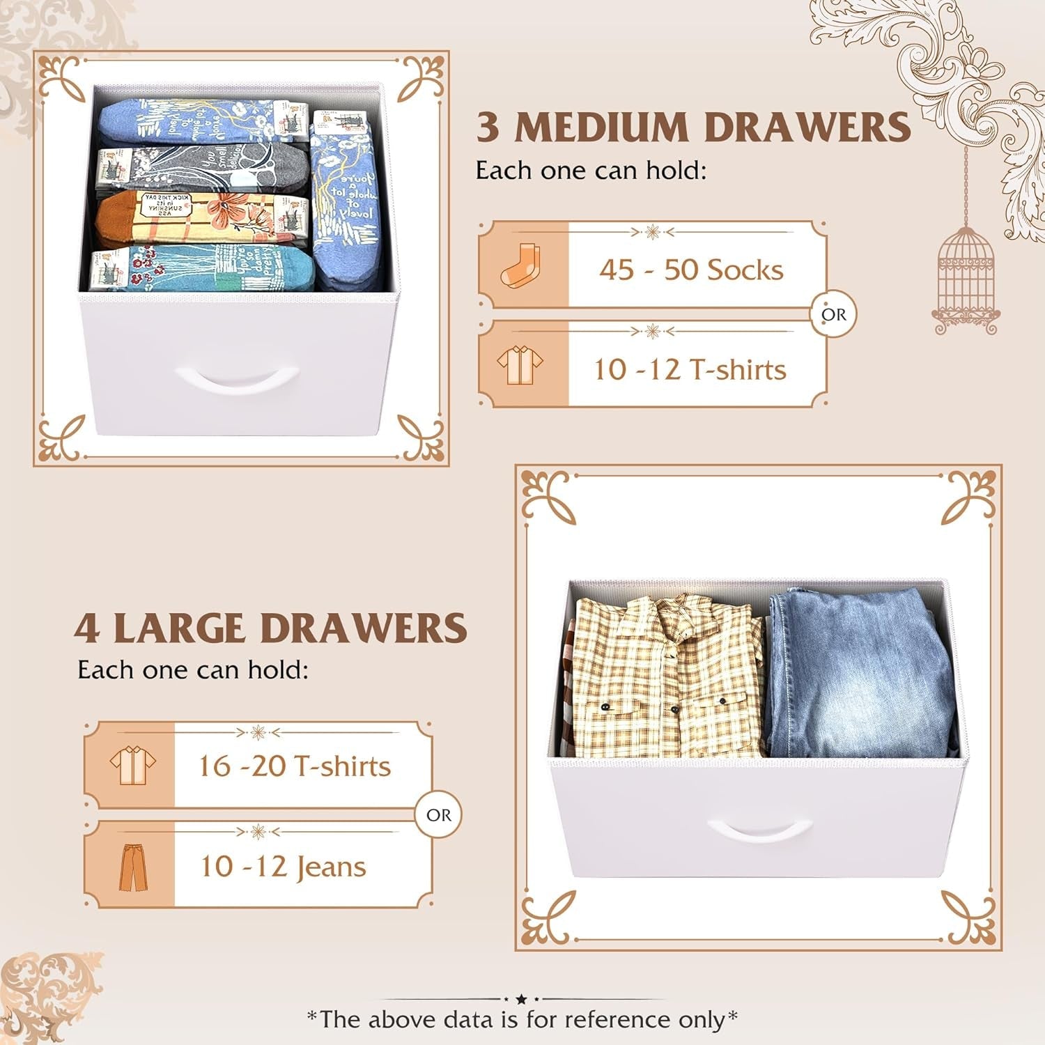- Roomy seven-drawer system: deep, foldable drawers maximize space and protect your privacy, making it easy to organize clothes, linens, and accessories.